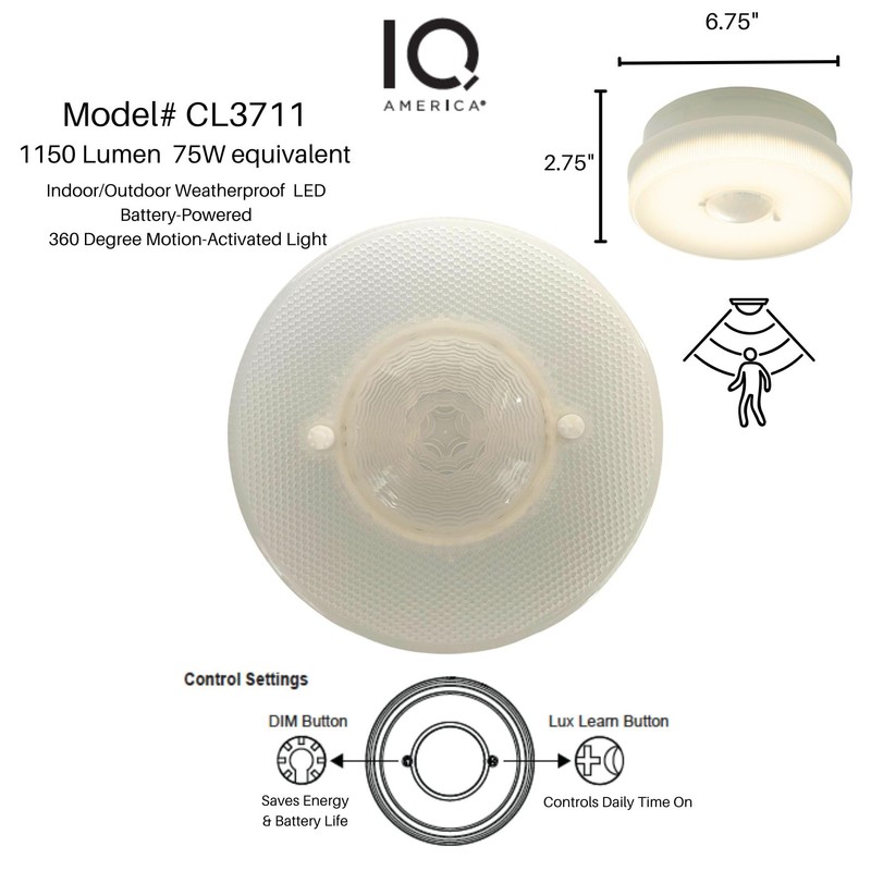 IQ America Battery Operated Motion Sensor Ceiling Light 7 inch - 1 Light