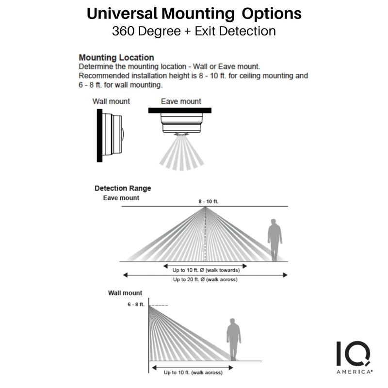 - Prism-lit edge illumination, 360 degree, 8-10 feet detection range with exit detection