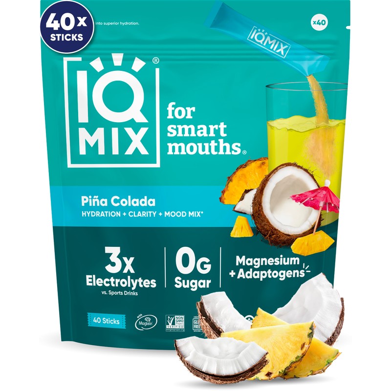 IQMIX Hydration Electrolyte Powder – 4-in-1 Formula for Hydration, Mental Clarity, Mood and Recovery – Sugar-Free Drink Mix, Keto, Magnesium L-Threonate, Lion’s Mane – 40 Count Piña Colada