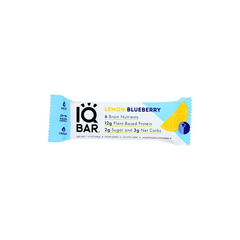IQBAR Lemon Blueberry Keto Bars, Vegan, Low Sugar, 1.6 Ounces (Pack Of 12)