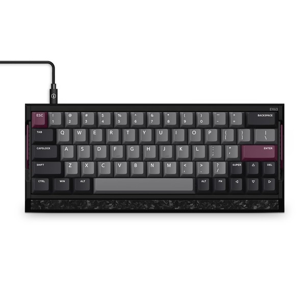 • Premium Aluminum & Forged Carbon – Crafted from aircraft-grade CNC aluminum and reinforced with a forged carbon front, the EV63 unibody frame delivers unmatched stability and precision. Its smooth, cool touch and unique marbled texture create a durable, premium, one-of-a-kind typing and gaming experience.