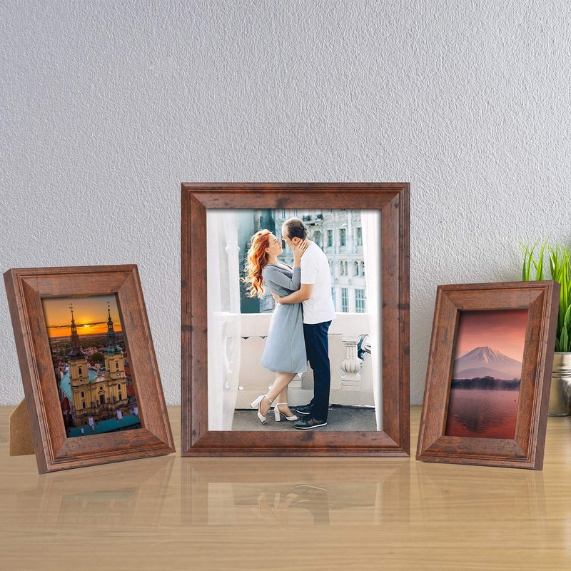- COMPOSITE WOOD PHOTO FRAME: This picture frames set made of MDF, The HD glass cover can clearly display your cherished photos(No worrying about injury for broken glass), protecting your photos from dust, moisture and scratches.