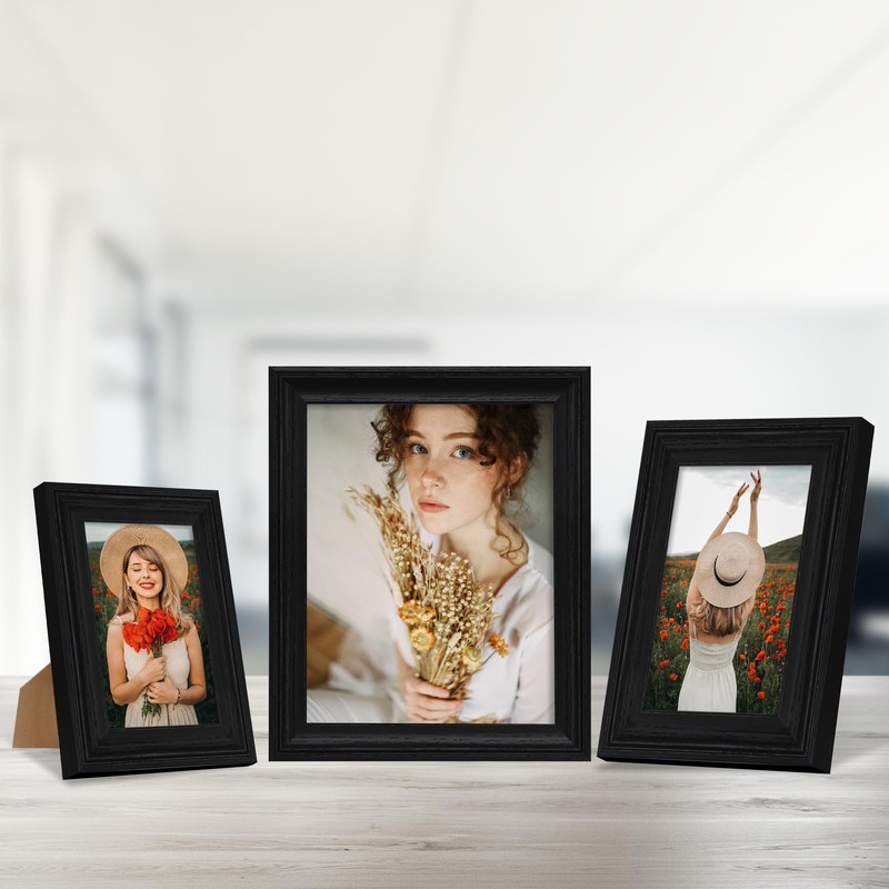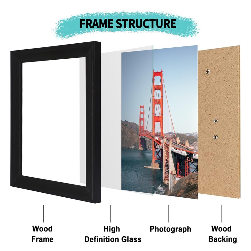 - COMPOSITE WOOD PHOTO FRAME: This picture frames set made of MDF, The HD glass cover can clearly display your cherished photos(No worrying about injury for broken glass), protecting your photos from dust, moisture and scratches.