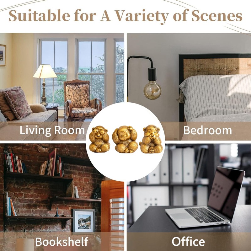 - EXCELLENT DECORATION: The monkey statue fits any interior style, ideal for home decoration, bedroom decoration, office decoration, living room decoration. Just put it on the place you like, such as bookshelf, mantelpiece, TV cabinet, bedside tables, table, desk, etc.