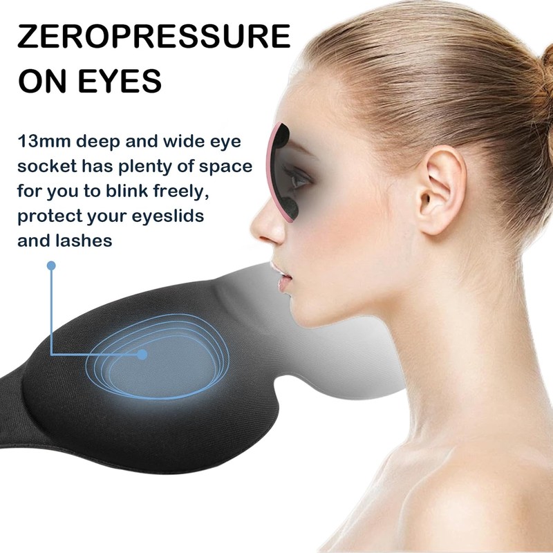 [Ergonomic 3D Hollowed Design] Inorder to allow your eyes to blink free and no pressure on your eyes, we designed this deepest 3d sleep eye mask in the market. The 3D hollowed design gives extra space around the eye area, so you can wear it without messing your eyebrows, eye lash extensions or false eyelash!