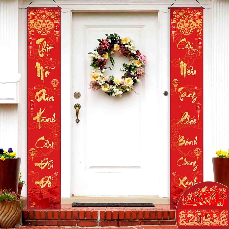 IRCOR Tet Decorations 2025 Couplet with 12 Red Envelopes Vietnamese New Year Banners for Outside Vietnamese Lunar New Year Decorations 2025