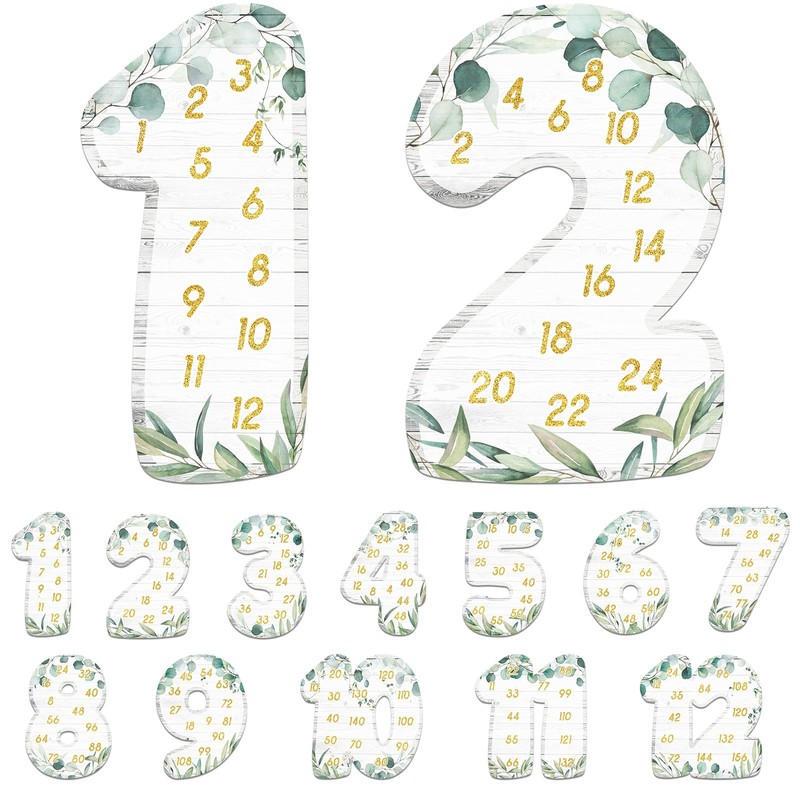 Ireer 12 Pcs Multiple Math Posters from 1 to 12 Multiplication Chart Fact Skip Counting Numbers Times Multiplication Flash Cards Poster for Kids Leaning Studying Classroom Home Decor (White,Greenery)