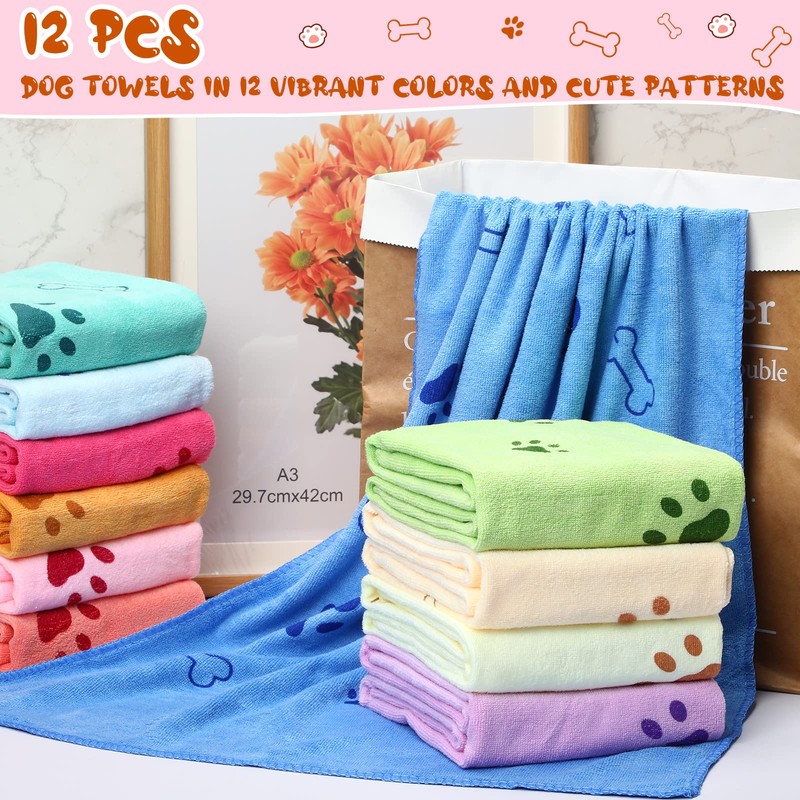 - 12 Pieces Pet Bath Towels Set: you will receive 12 pieces of pet bath towels from the package, sufficient quantity for daily use and replacement needs; And there are 12 colors for you to choose, including blue, green, earthy yellow, pink, purple, cyan, orange pink, gray, beige, light yellow, light pink, light blue, convenient to distinguish the users according to the color