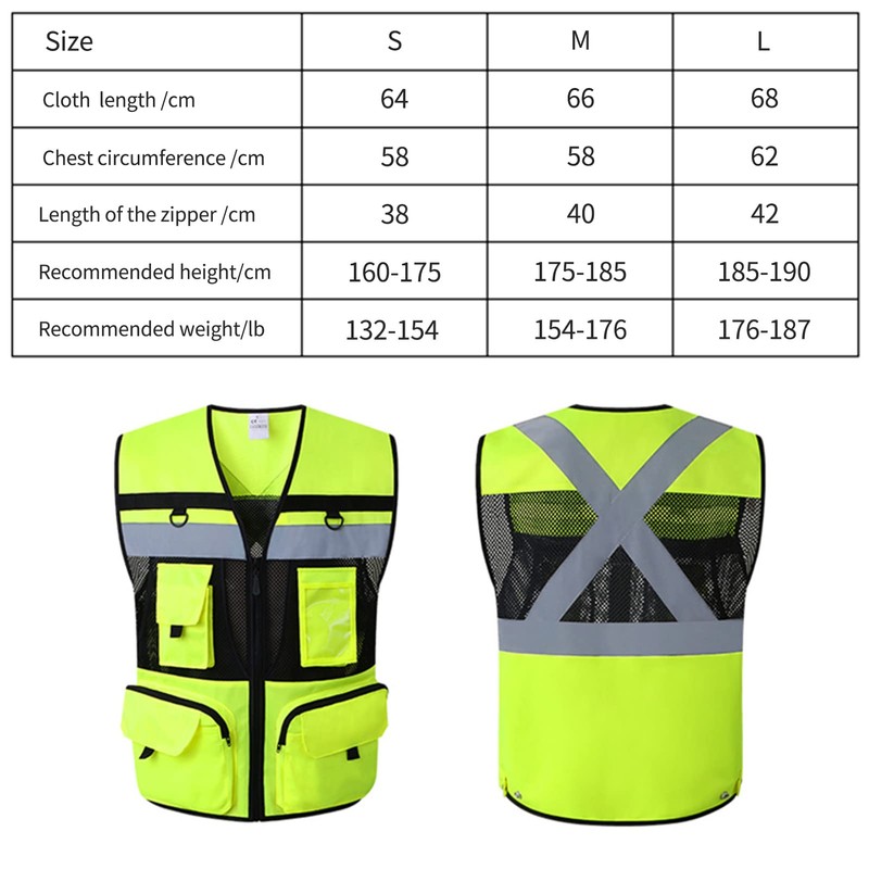 High visibility and 360° reflectivity Neon yellow and black safety vest body is made of 2" wide reflective strips that cover the chest and back area for greater visibility. She provides 360° protection while you work in sunlight or dark conditions.