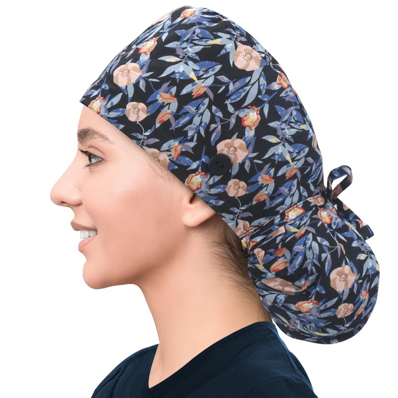 - [Premium Material & Adjustment] 100% high-grade cotton fabric scrub cap, light, comfortable & breathable. IRISCRAFT Bouffant Style Caps have an elasticized band and ties in the back that can be worn two ways: Tied loosely in back or Tied up in a ponytail. One size can fit most.
