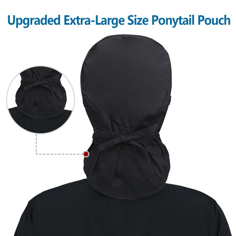 - [Ponytail Pouch & Button Design] Working cap designed for long hair, the ponytail pouch allows you to neatly secure your hair, giving you a professional and polished look while maintaining comfort. The scurb strategically placed buttons near the ears provide a convenient solution to prevent mask straps from pulling on your ears, reducing discomfort and avoiding wrinkles caused by prolonged mask wear. This thoughtful design ensures both functionality and style during your workday.