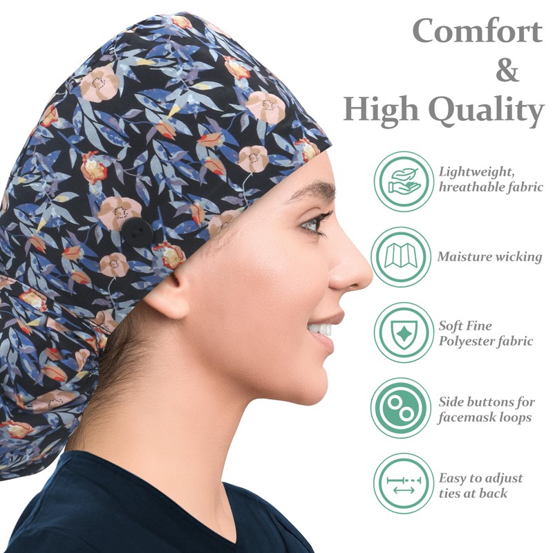 - [Silk Satin Lining] Cotton fabric with silky satin lining scrub cap, thin, more breathable, comfortable and smooth, protects your scalp and hair from the dryness caused by friction, keeps hair’s moisture all day long, scrub with elastic band on the backside for you can set the hair easily, the working hat will not make you feel painful even it's tight.