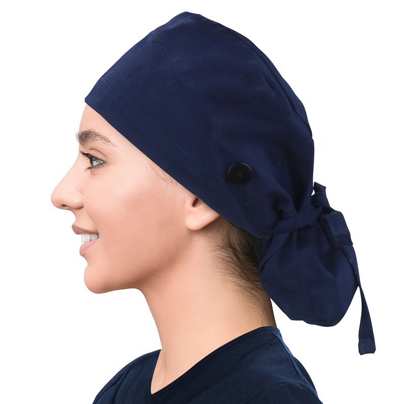IRIS CRAFT Gorra de trabajo ajustable con botón, gorro de trabajo de algodón, banda elástica para el sudor, sombreros para mujeres y hombres, talla única, azul marino, Azul Marino, Talla única