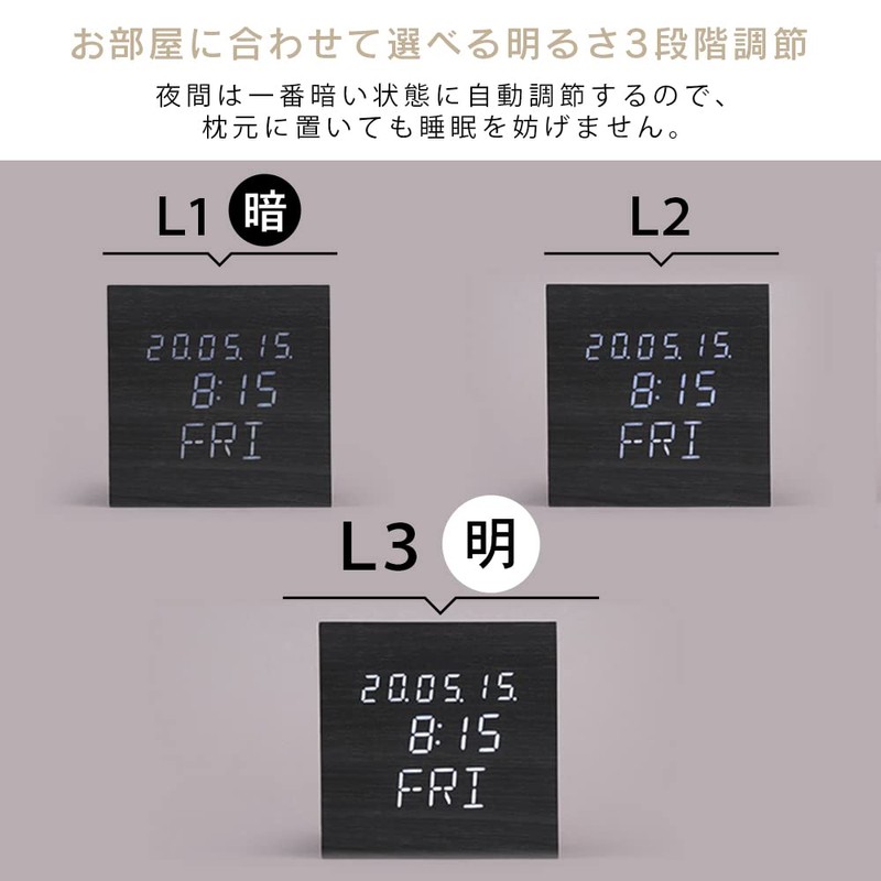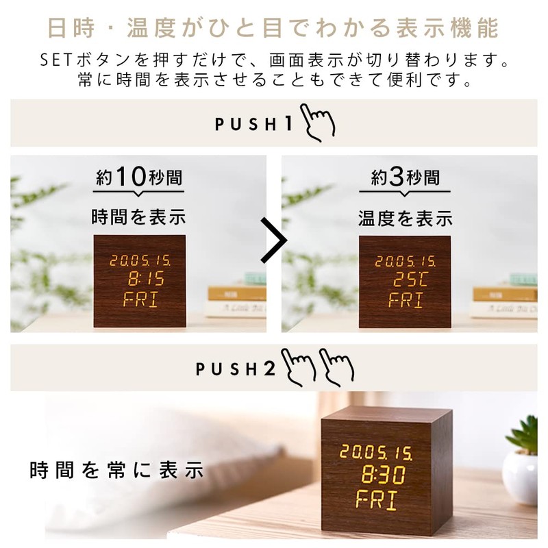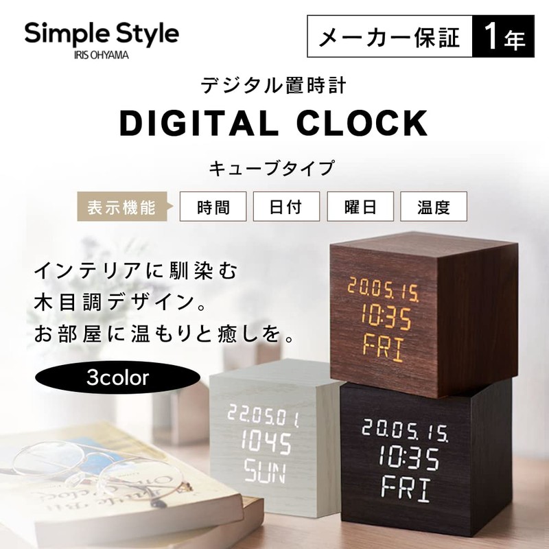 Iris Ohyama Digital Alarm Clock, Standing Clock, Wooden Clock, Stylish