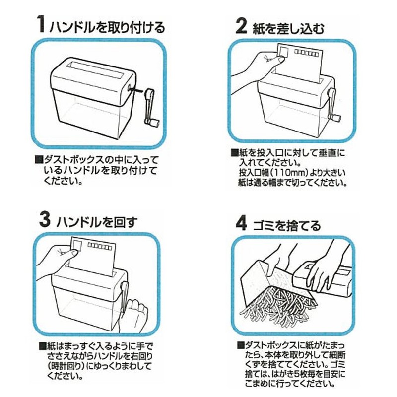 Iris Ohyama H62ST Tabletop Hand Shredder for Home, Straight Cut, Dust Bin, 0.3 gal (1.5L), Compact, Blue