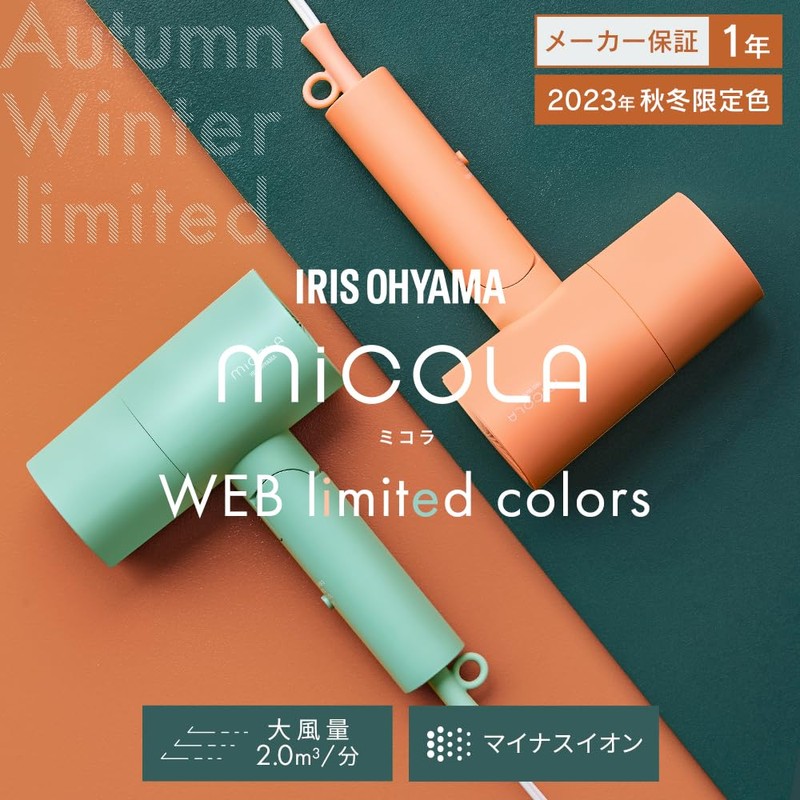 Iris Ohyama HDR-M102-G Ion Dryer, Large Airflow, Quick Drying, Lightweight, Speedy, Mint Green