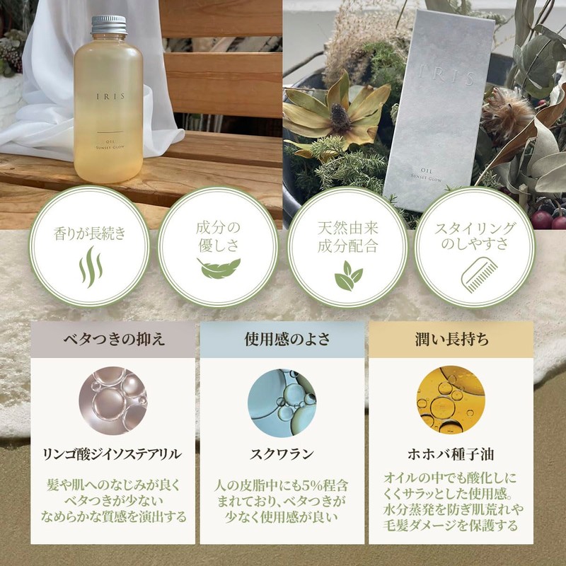 IRIS OIL SUNSETGLOW Hair Oil, Non-Rinsing Treatment, Styling, 5.1 fl oz (150 ml), Non-sticky, Smooth