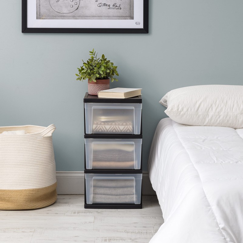 IRIS USA 2 Pack 3 Drawer Plastic Organizers and Storage, 4 Drawer, Black