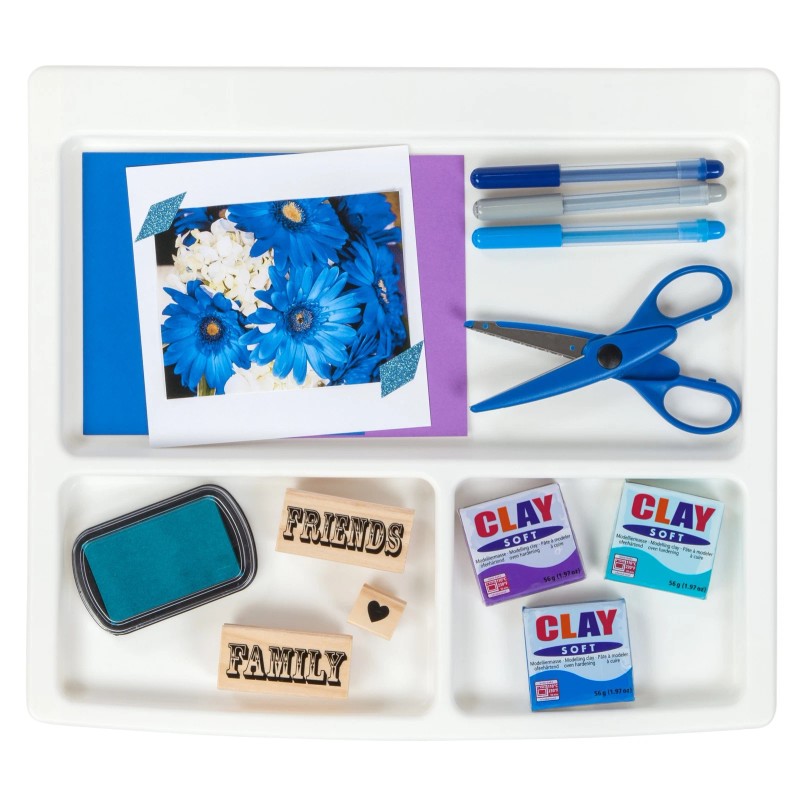 The IRIS USA scrapbook storage cart / tower comes with (6) spacious scrapbook cases and provides exclusively unique storage solutions to help your personal items stay organized into one place; accommodates 12" x 12" decorative papers, vinyl, tools, art supplies, photos, notebooks, stationery and upgrades your workstation nice and neat. A solid-built organizer top lid allows you to store various frequently used items such as pens, paper clips, sticky notes, scissors, staplers, accessories and even remote controller, also this can be used for storing beads, crafting, cardstock, cables, decorations, washi tapes (20 - 30 rolls per case), beauty supplies such as lip gloss / nail polish bottles and anything you need; the usage is more than just for scrapbooking! Each case can be removed for your on-the-go projects, rounded corners protect contents from damage, double-latched cases securely protect from house dust for extra peace of mind, and you can move the entire cart with (4) optional caster wheels for your convenience. Also, great for craft rooms, classrooms, and home office. The weight capacity is 35 lbs for the entire unit including the organizer top. Made in USA with global materials. BPA Free. Acid Free.