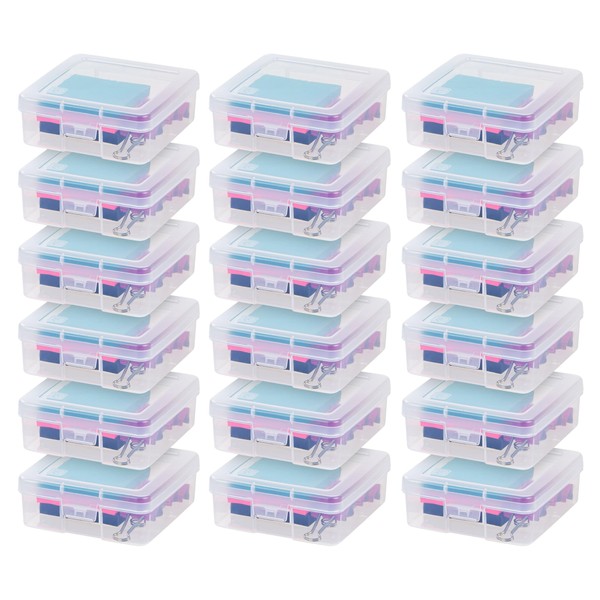 IRIS USA Plastic Pencil Case Box Craft Hobby Art School Supply Storage Organizer Container with Latching Lid, 18-Pack, for Bead Pens Ribbons Wahi Tape Sticker Yarn Ornaments, Stackable, Clear, Small