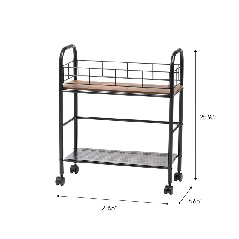 - TWO STORAGE OPTIONS: Smooth rustic wooden surface, a sturdy mesh metal shelf; multi-purpose slim storage cart offers wood shelf on top and metal shelf on the bottom for books, office supplies, electronics, food, clothes, linens and more