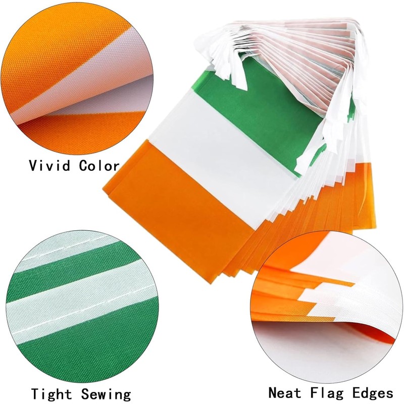 - 🚩Size -- The total length of the Irish flags bunting is about: 10m, flag size is 21 x 14 cm (8.27 x 5.51 inch), including 30 flags.