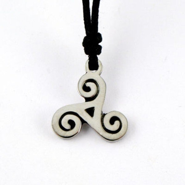 Irish Pewter Celtic Triple Spiral Pendant with Adjustable Black Cord