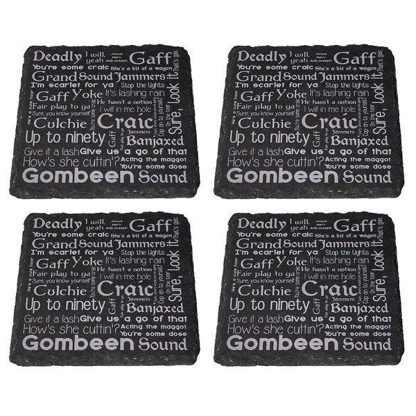 Irish Slang Square Printed Slate Drink Coasters Set of 4 with Funny Irish Phrases by Lifeforce Glass