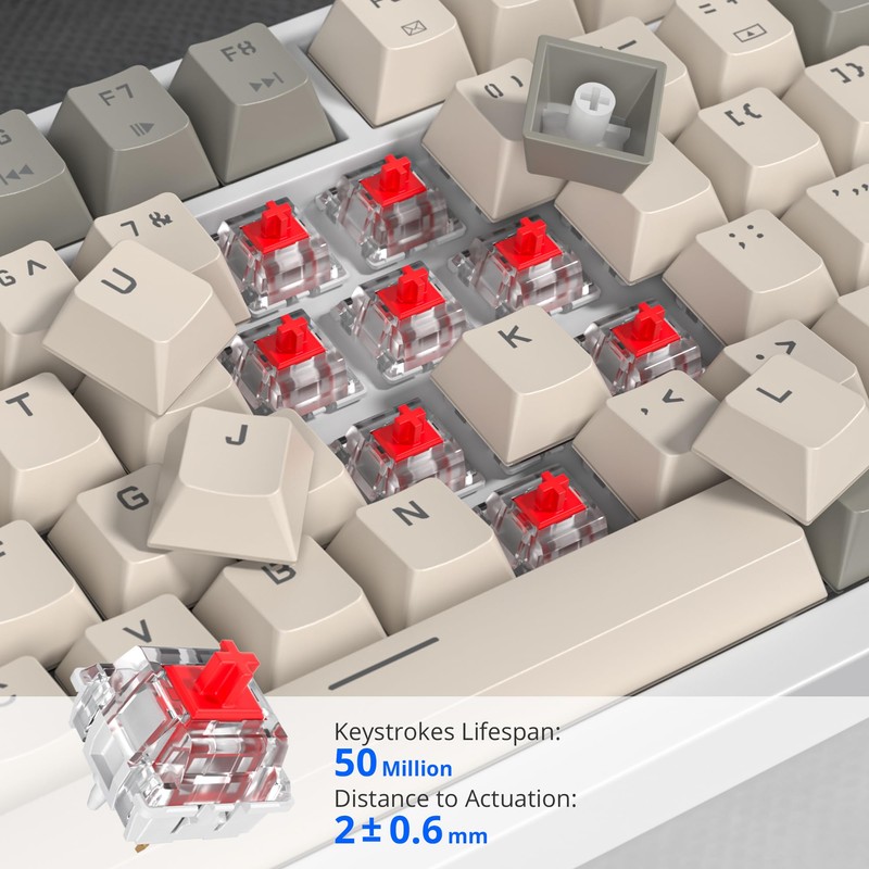 • Hot Swappable Red Switches - Equipped with premium red switche, this mechanical keyboard offers a smooth and linear keystroke that is highly responsive. What sets this 75% percent gaming keyboard apart is its hot-swappable functionality. You can easily remove and replace switches all to your liking, if you want to try other switches options such as blue, brown or black and more.