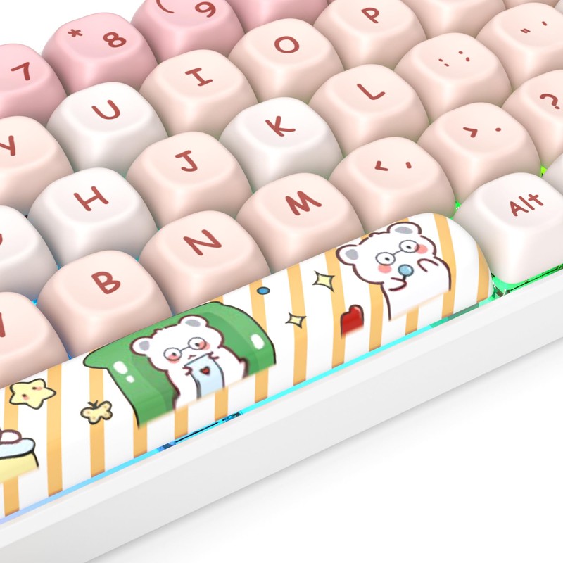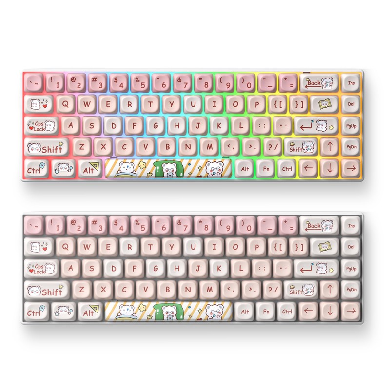 iRoboosta PBT Dye Sublimation Keycaps MOA Keycaps, 139 Keys Custom Keycaps, Cute Keycaps Set for US Layout Cherry MX Swithes Mechanical Keyboard (Bear Pink)