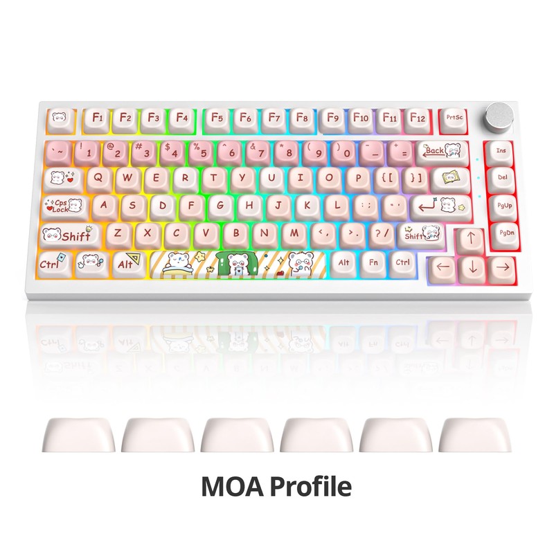 - Thick MOA Keycaps: MOA keycaps are usually thicker and wider than regular keycaps with more rounded lines, more concaved on the top, offering a better satisfying feel when typing/gaming.