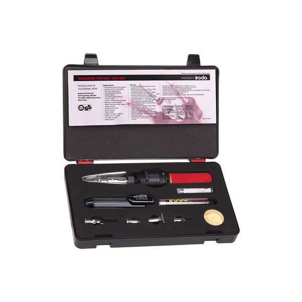 - Kit includes 4 extra tips, cored solder and cleaning sponge in a tough case
