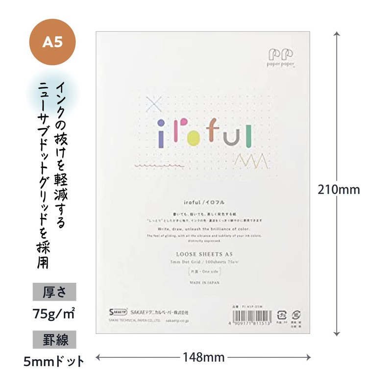 iroful 75 gsm Loose Sheet, 8.27" x 5.85", 100 Sheets/Pack, 5mm Dot Grid, White, 1 pack (PI-A5P-D5W)
