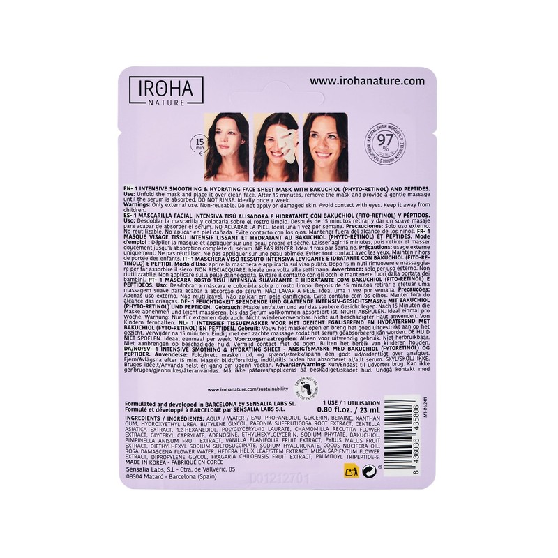 - EFFECTIVE AND VEGAN PRODUCT: The mask is dermatologically tested and has proven results. The product is made with 97% natural ingredients. It is environmentally friendly as the mask is 100% compostable. Iroha Nature products are vegan, cruelty free and PETA certified since 2021