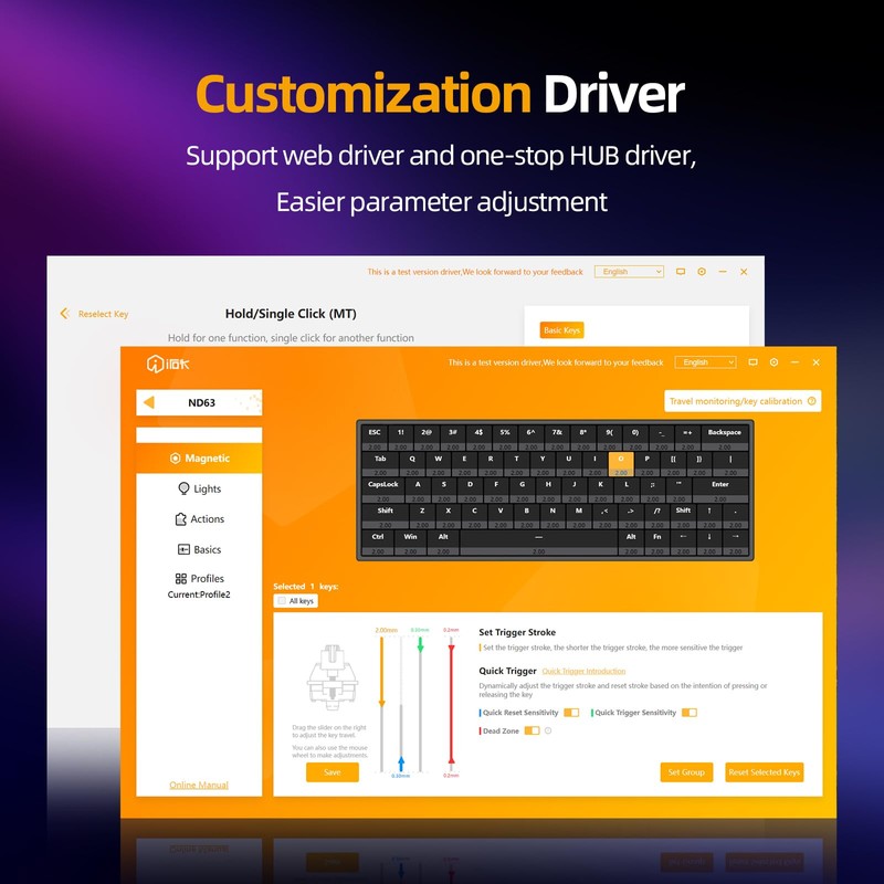 - Web Driver and One-stop HUB Driver - IROK ND63PRO gaming keyboard supports web driver and one-stop HUB driver, which is easy to operate and manage, and can reduce the tedious installation steps.Driver download address:www.irok.cc