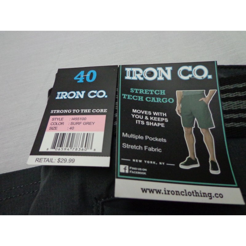 IRON CO. 'Warder' Stretch Tech Cargo Belted Shorts Surf Grey Size 40 NEW
