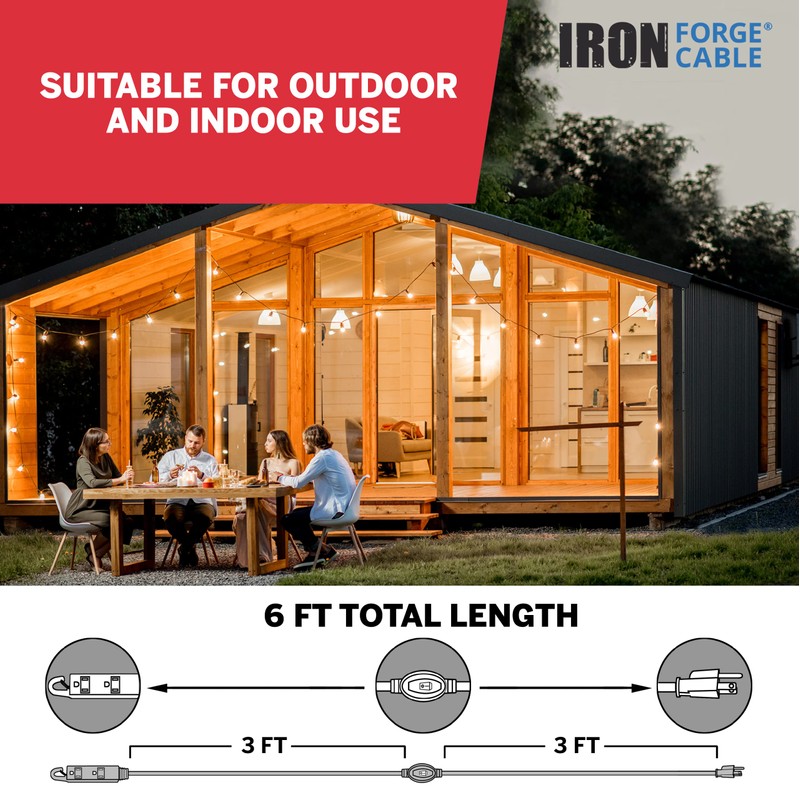Iron Forge Cable Beige Outdoor Extension Cord 10 ft, 16/3 13 Amp SJTW Heavy Duty Power Weatherproof Cable & Inline Extension Cord with Switch 6 FT 3 Outlets 16/3 SJTW 10 AMP White with Hanging Hook