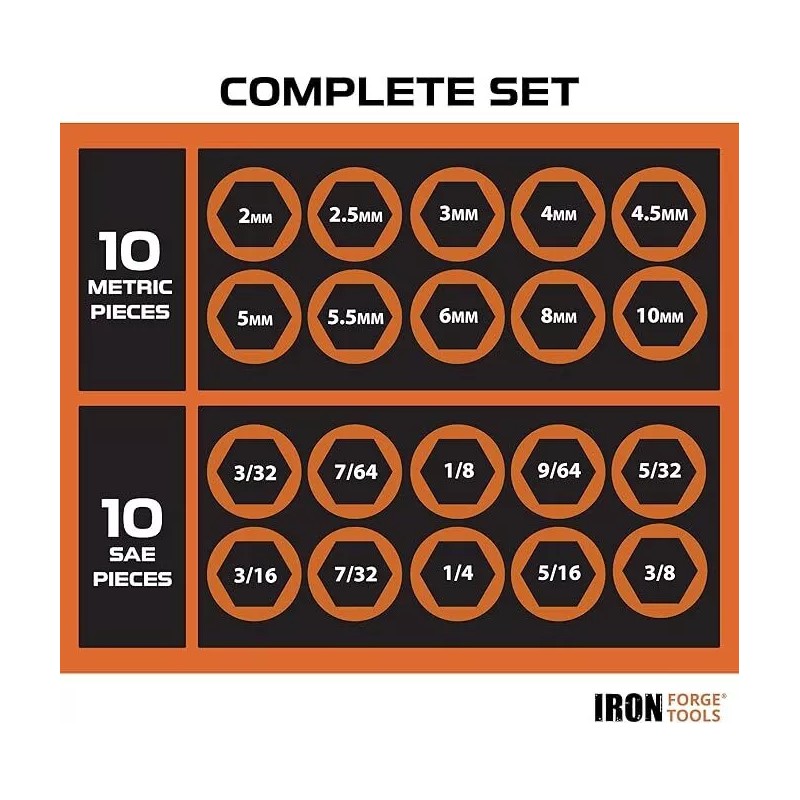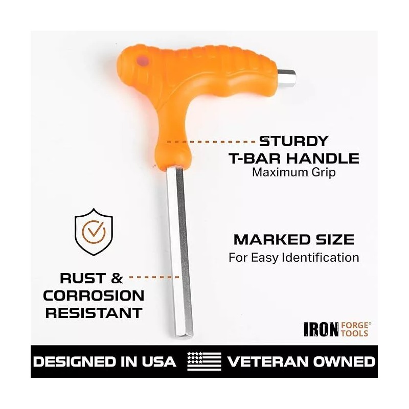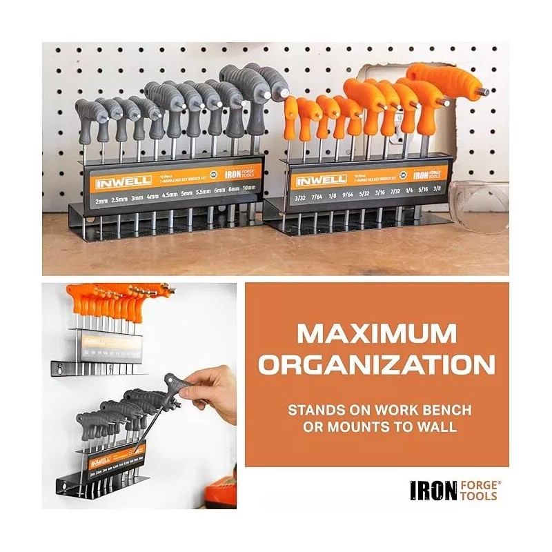Iron Forge Tools 20 Piece T Handle Allen Wrench Set - SAE & Metric Hex Key Set with Stand