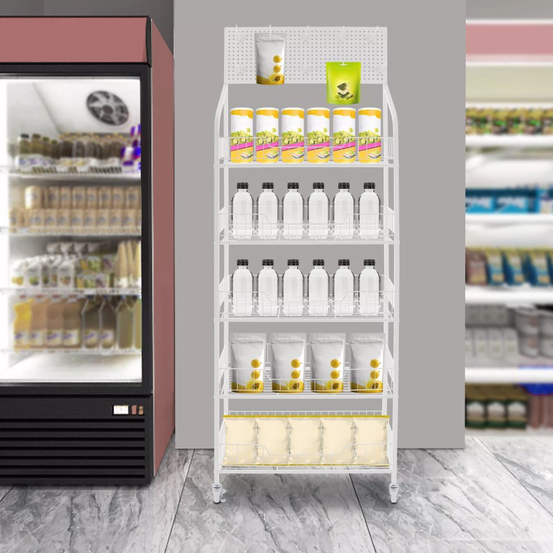 In the retail industry, a good display can make goods stand out and attract customers' attention. Take a look at our well-designed retail display stand. It is not only rugged but also stylish. The multi-tier storage structure can meet your diverse display needs, and the hole-hanging plate at the top is a highlight. With its reasonable structural design, premium material, multi-functional applications, and convenient use experience, it has become an ideal choice for your store display.
