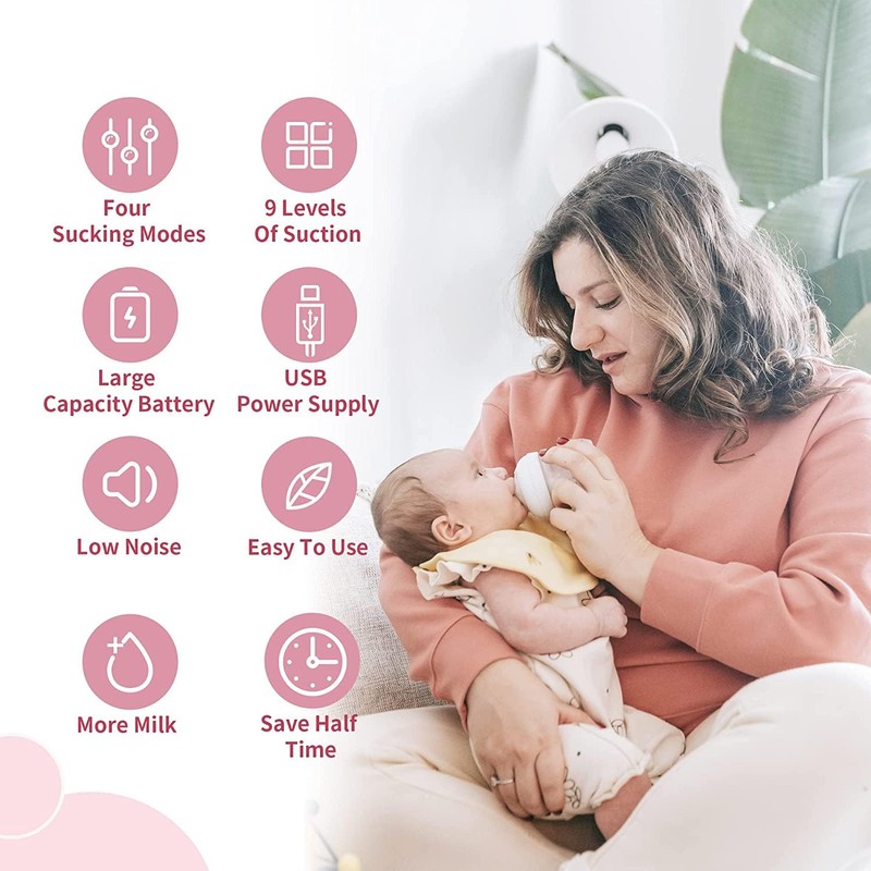 - 【Eficiente e inteligente succión ajustable del extractor de leche】3 modos y 9 niveles de la tecnología de succión inteligente que se puede ajustar de acuerdo a su preferencia. El modo de succión imita la frecuencia de succión real del bebé con función de masaje y lactancia para obtener más leche en menos tiempo.