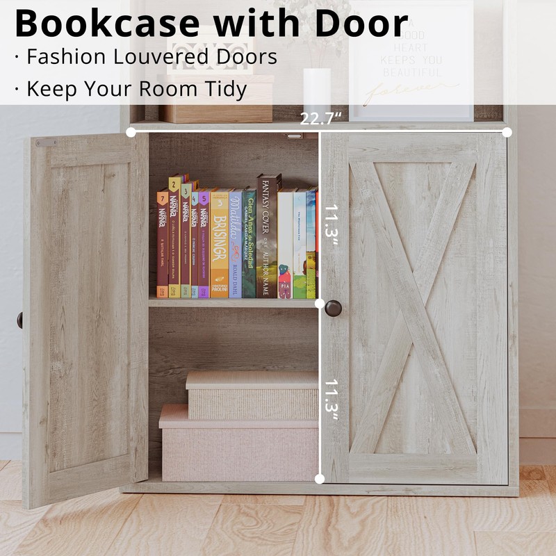 IRONCK Industrial Bookshelves and Bookcases with Doors Floor Standing 6 Shelf Display Storage Shelves 70 in Tall Bookcase for Home Office, Living Room