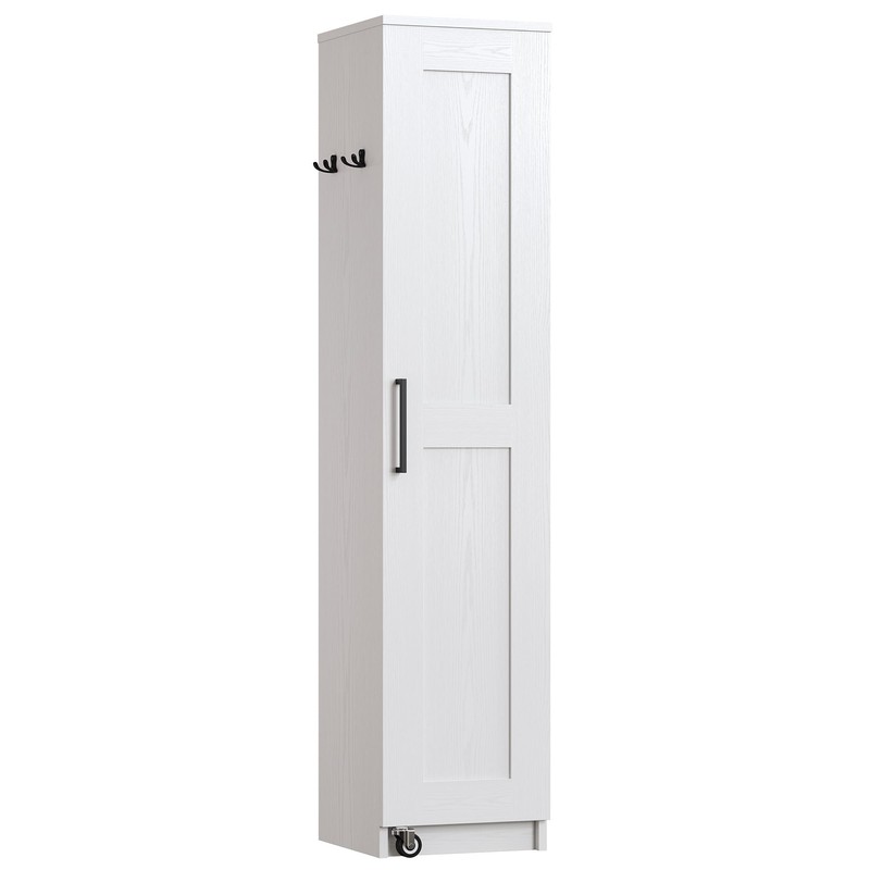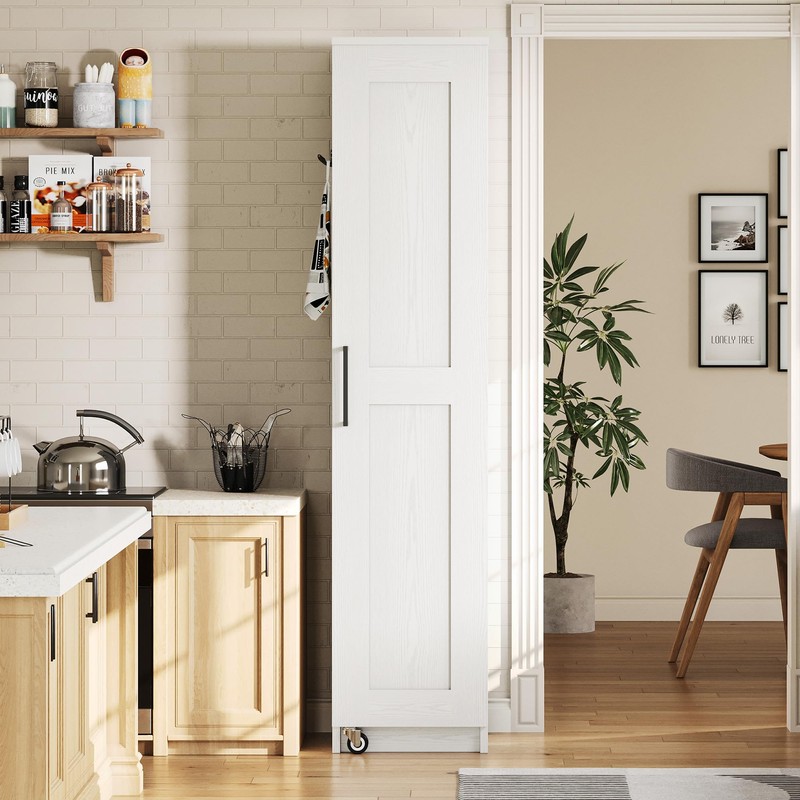 IRONCK Narrow Kitchen Pantry Storage Cabinet, 72" Slim Single Door with 6 Adjustable Shelves, Door Rack and Wheels, Space Saving Freestanding Storage Floor Cabinet for Small Place, White