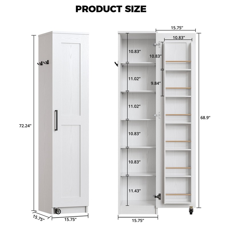- Easy Assembly: This 72”H pantry cabinet comes with clear instructions and all hardware, enabling quick and hassle-free setup, even for beginners