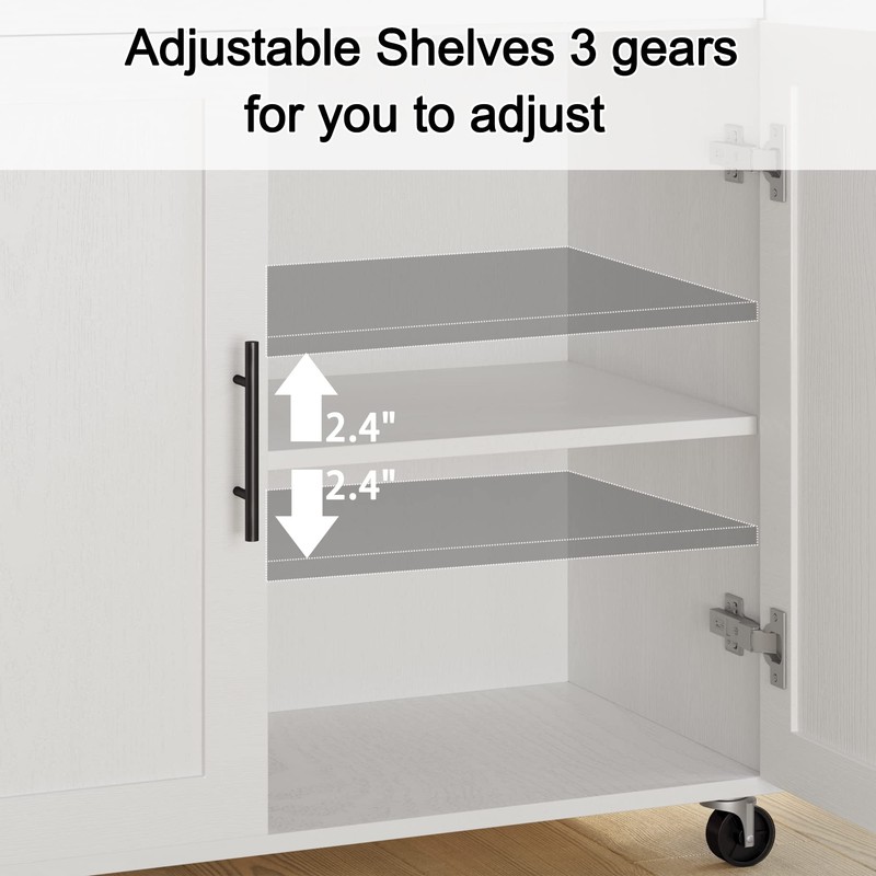 - With Adjustable Shelf -The interior shelves in cabinets can be adjusted to 3 heights to meet dissimilar storage requirements, suitable for wine bottles, kettles, and large pots.