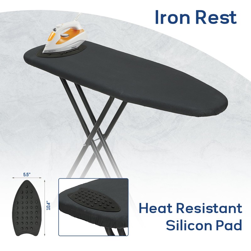 Ironing Board 43x13 with Iron Rest, RAINHOL Compact Iron Board Full Size with Thick Cover and Pad, Easy Storage Hanger with Heat-Resistant Silicone Pad, Space Saving and Height Adjustable, Black