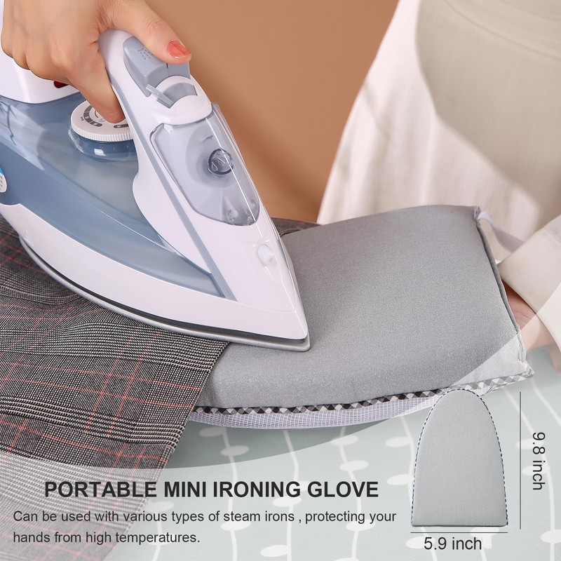 - Convenient Accessories:The ironing board set comes with additional practical accessories, including a dust cover, insulation mesh, mini handheld ironing gloves, and a replacement gray cloth cover. Thermal insulation mesh can be used for some clothes that are not suitable for high-temperature ironing, so as not to cause damage to the clothes caused by ironing. Mini handheld ironing gloves, suitable for details such as collars and cuffs, while also protecting hands from iron or steam burns.