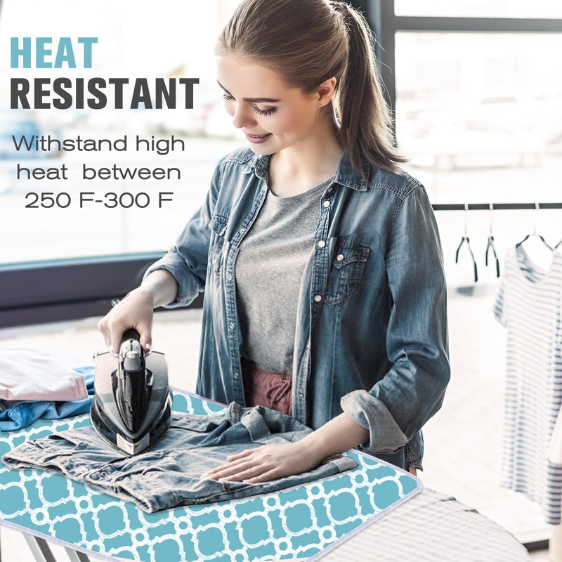 - 【DURABLE AND ANTI-SLIDE】Made of 4 layers thicken material with extra thick padding is scratch-proof, waterproof and heat-resistant. Protects table or bed from burning as well as allows steam to go through and also holds heat for quick ironing