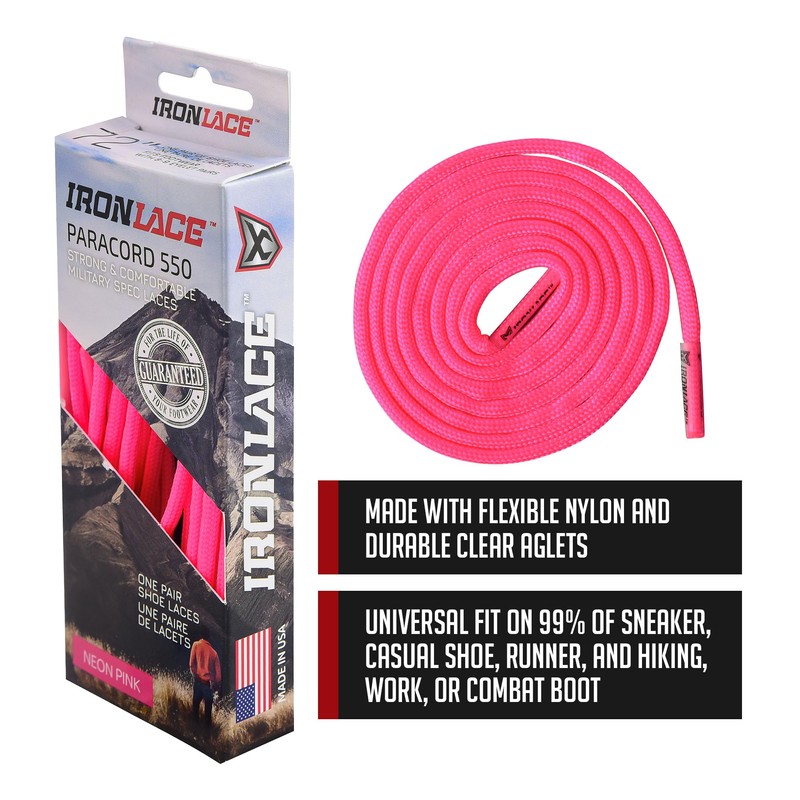IRONLACE Unisex's Bootlace, Shoelace, Runners, Hikers, Boots, Casual Shoes, Neon Pink, 72-Inch