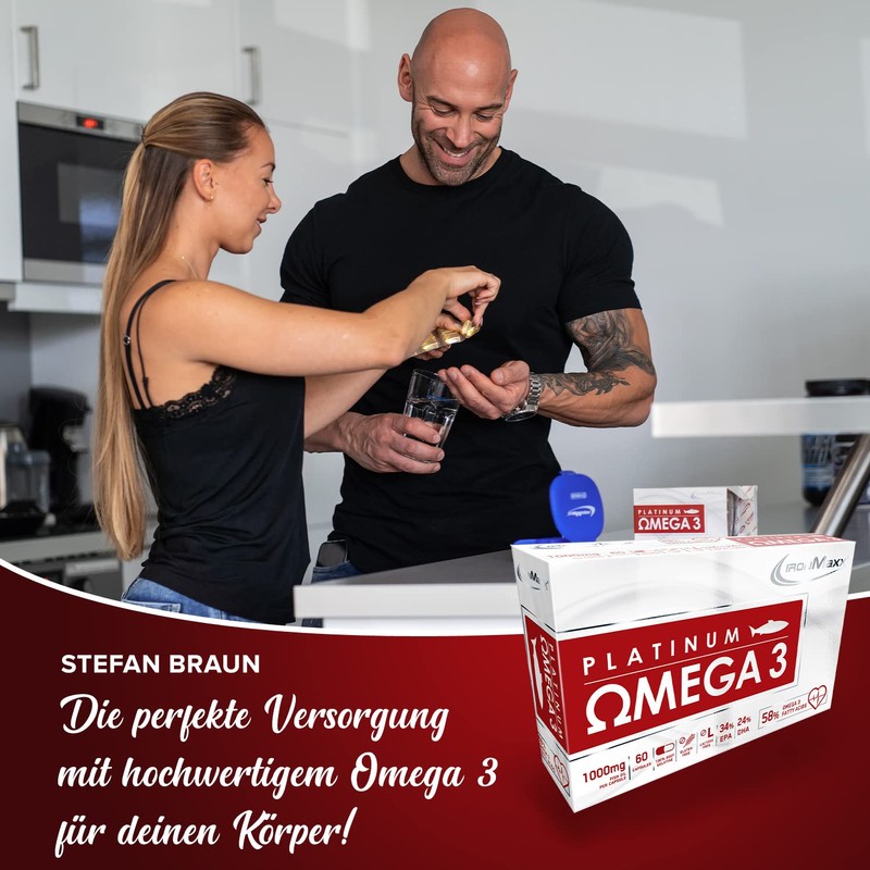 - The Omega 3 fish oil capsules from IronMaxx contain 34% EPA and 24% DHA, which contribute to normal heart function from doses of 250 mg.