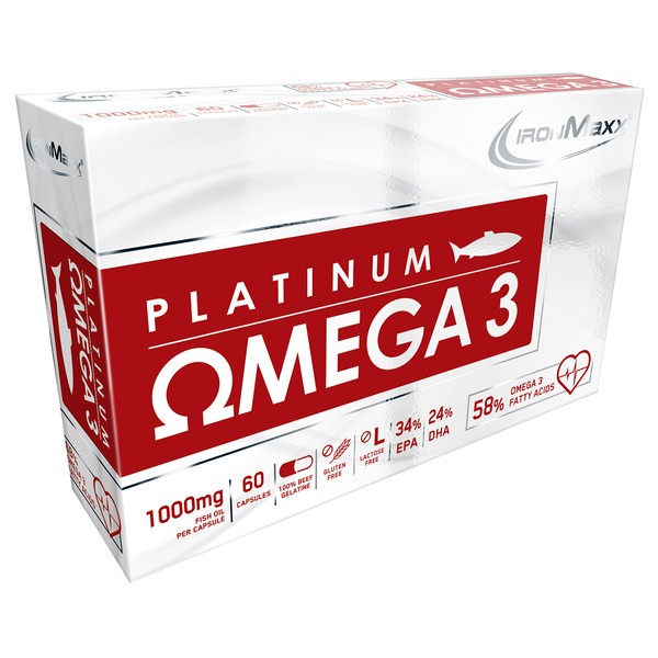 IronMaxx Platinum Omega 3 Capsules - 1000 mg Omega 3 Fish Oil Capsules, High Potency - 1 x 60 Capsules
